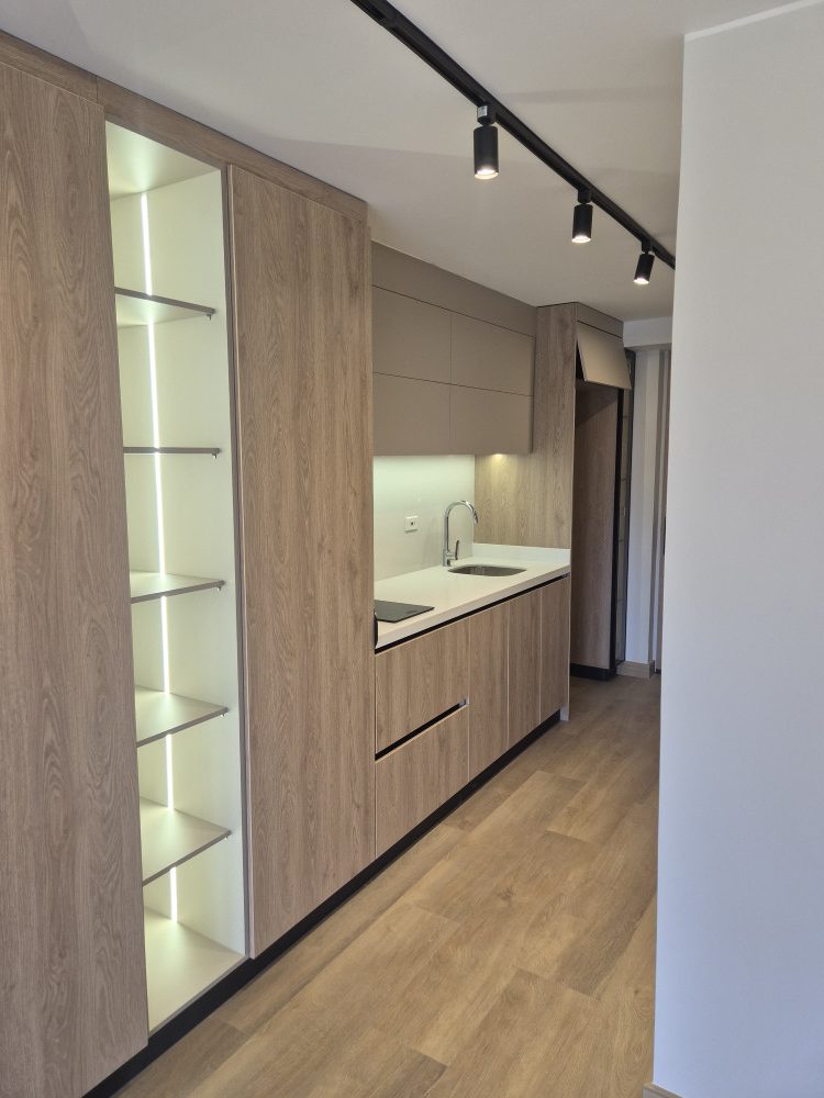 Acabados piso Hidrocore, carpinteria en madera, iluminación con sensores, electrodomesticos.